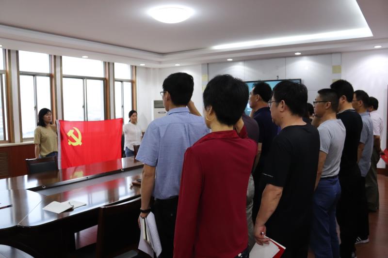活动最后,全体党员面对鲜红的党旗,庄严地重温入党宣誓。铿锵恢弘的誓词,表达对党的忠诚,强烈震撼着每一位党员。